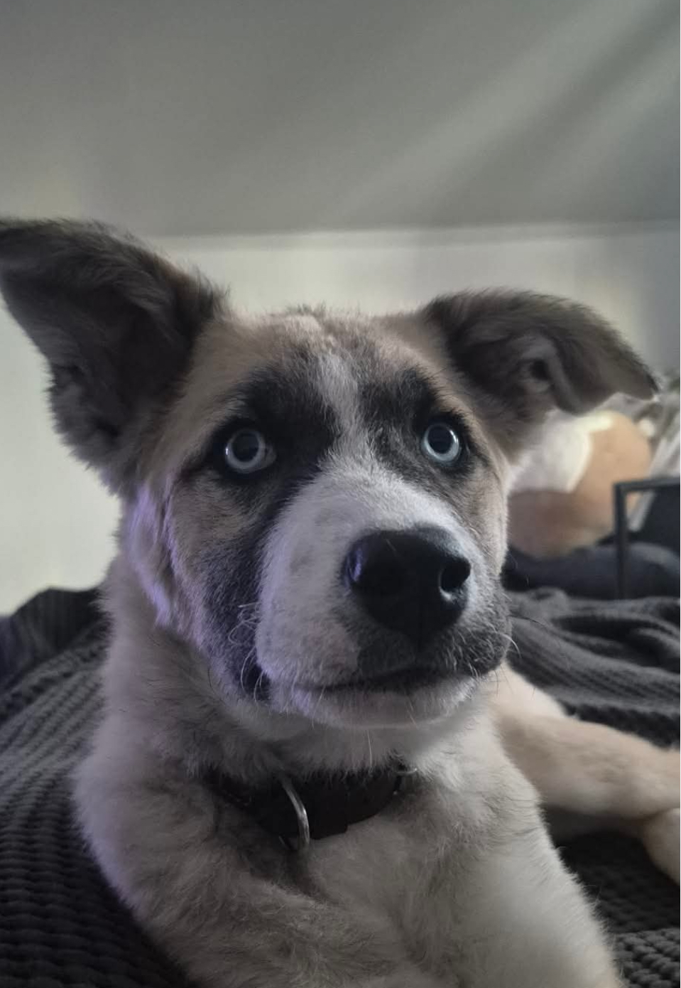 Like any good puppy, I have a silly side. I sometimes “borrow” shoes or slippers and bring them to my bed, I don’t ruin them, I’m just a collector of treasures! I’m also learning better door manners because if you open it, I want to zoom out and explore. I pull a little on walks, but I’m improving every day. A harness helps me a lot. And I eat FAST so a slow feeder bowl would be perfect for me.