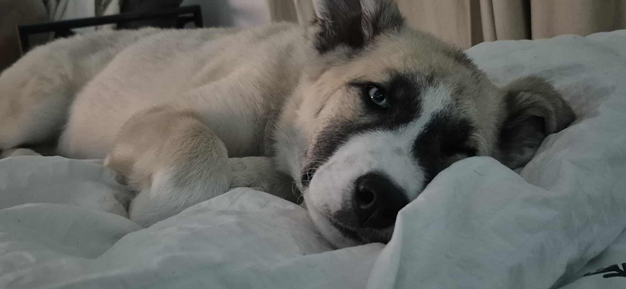 I’m not a fan of crates or pens, but if you gate me into a safe space, especially with another dog, I’m totally content. I’m doing great with potty training, too! I still need to go out every couple of hours during the day, but I can hold it all night long… as long as I’m cuddled in bed with my human. That’s my favourite place in the world.