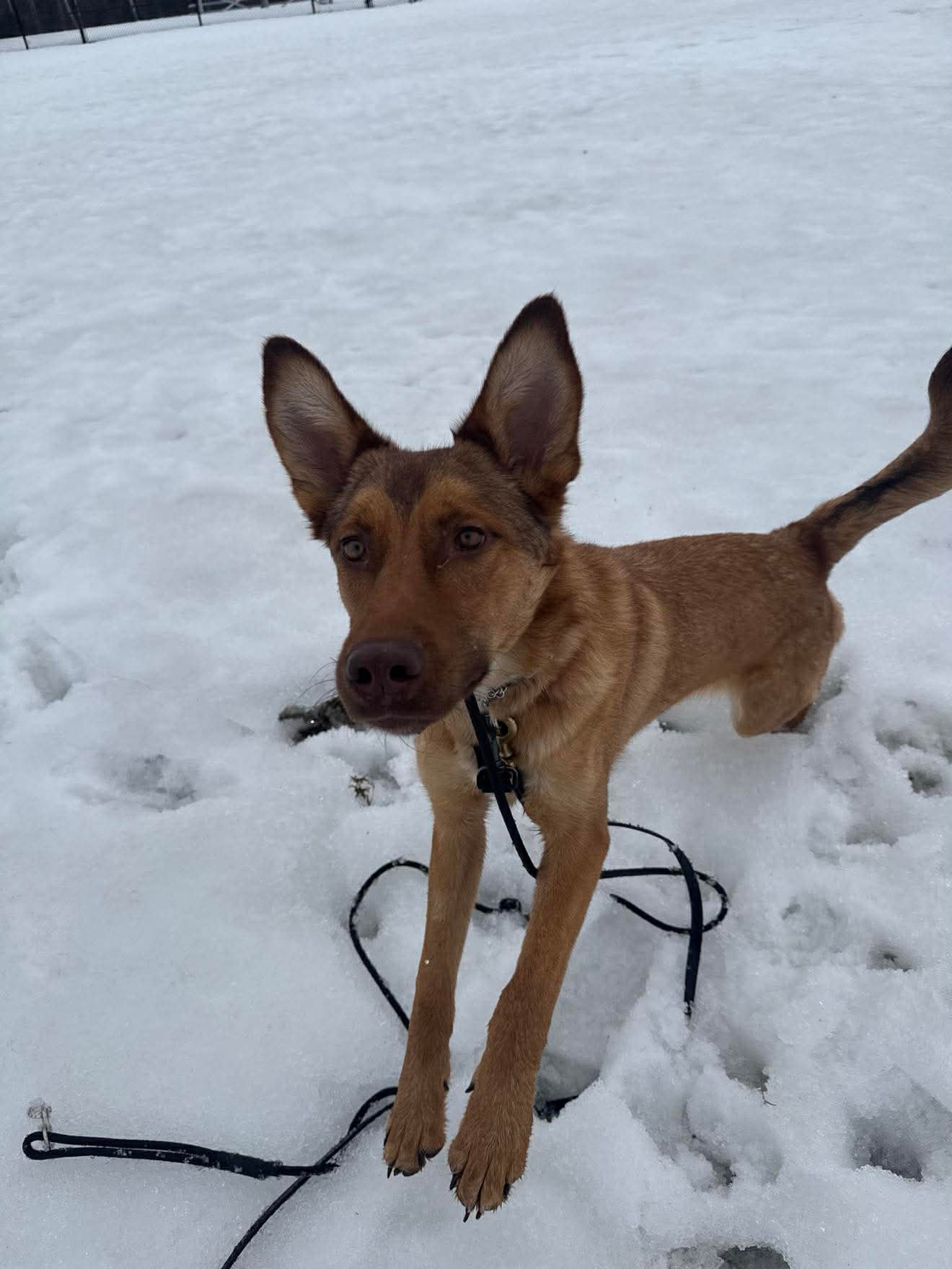 Desi gets along well with other dogs and could do very well with a confident canine companion, especially one who can help show her the ropes. She would likely thrive in a home that enjoys staying active — she’d happily join you on hikes, outdoor adventures, or even recreational dog sports that let her use both her brain and her energy.