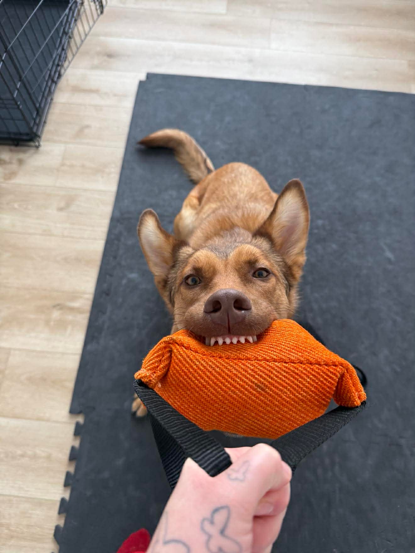When you come home, Desi greets you with the cutest excited tippy taps while she waits in her crate, ready for her next adventure with you.