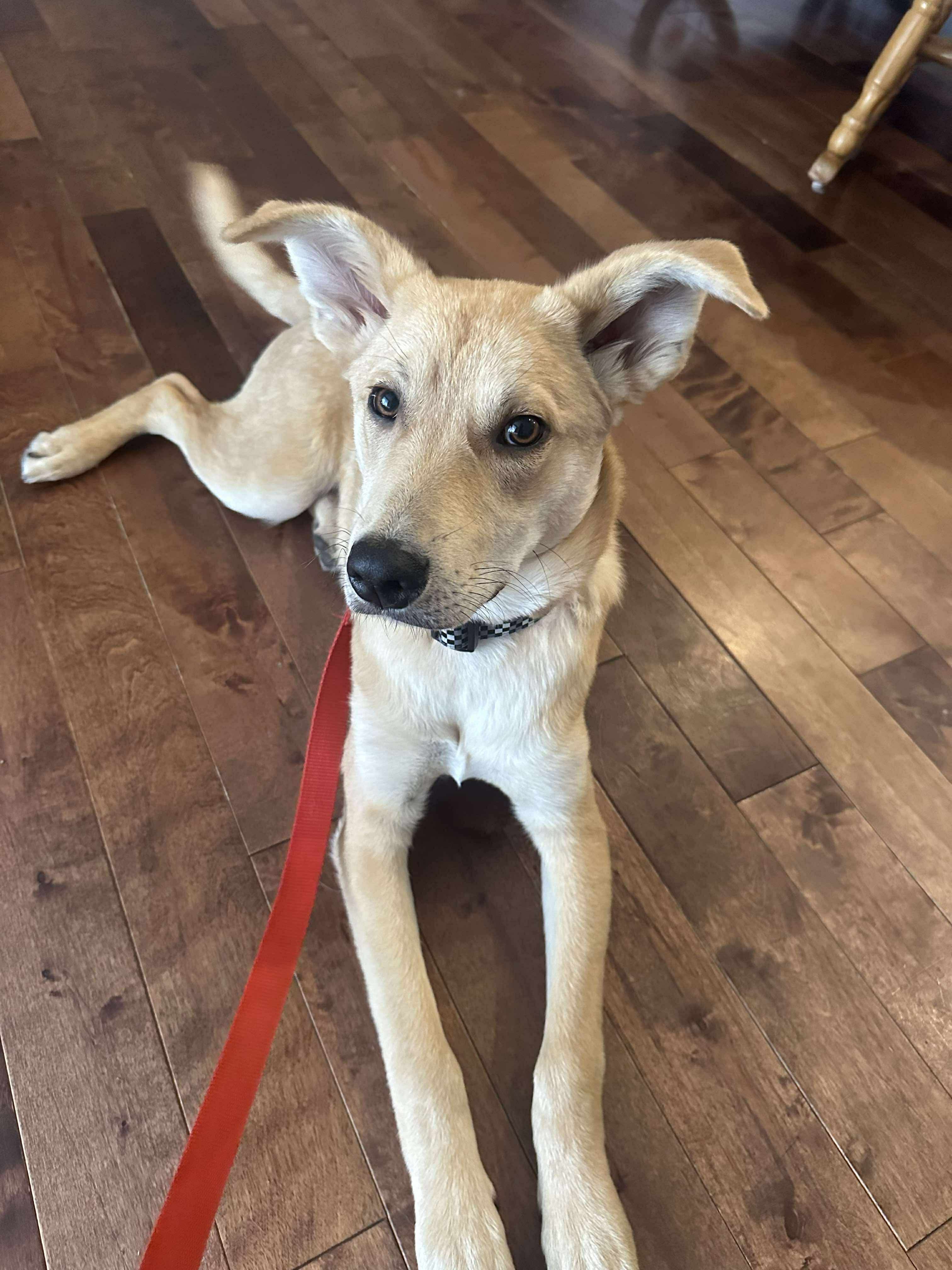 Like all puppies, Dusty is curious and occasionally picks up items like clothes or blankets. Gentle redirection to his toys works perfectly. He may bark in new situations, so a quieter home rather than an apartment setting will be the best match for him.