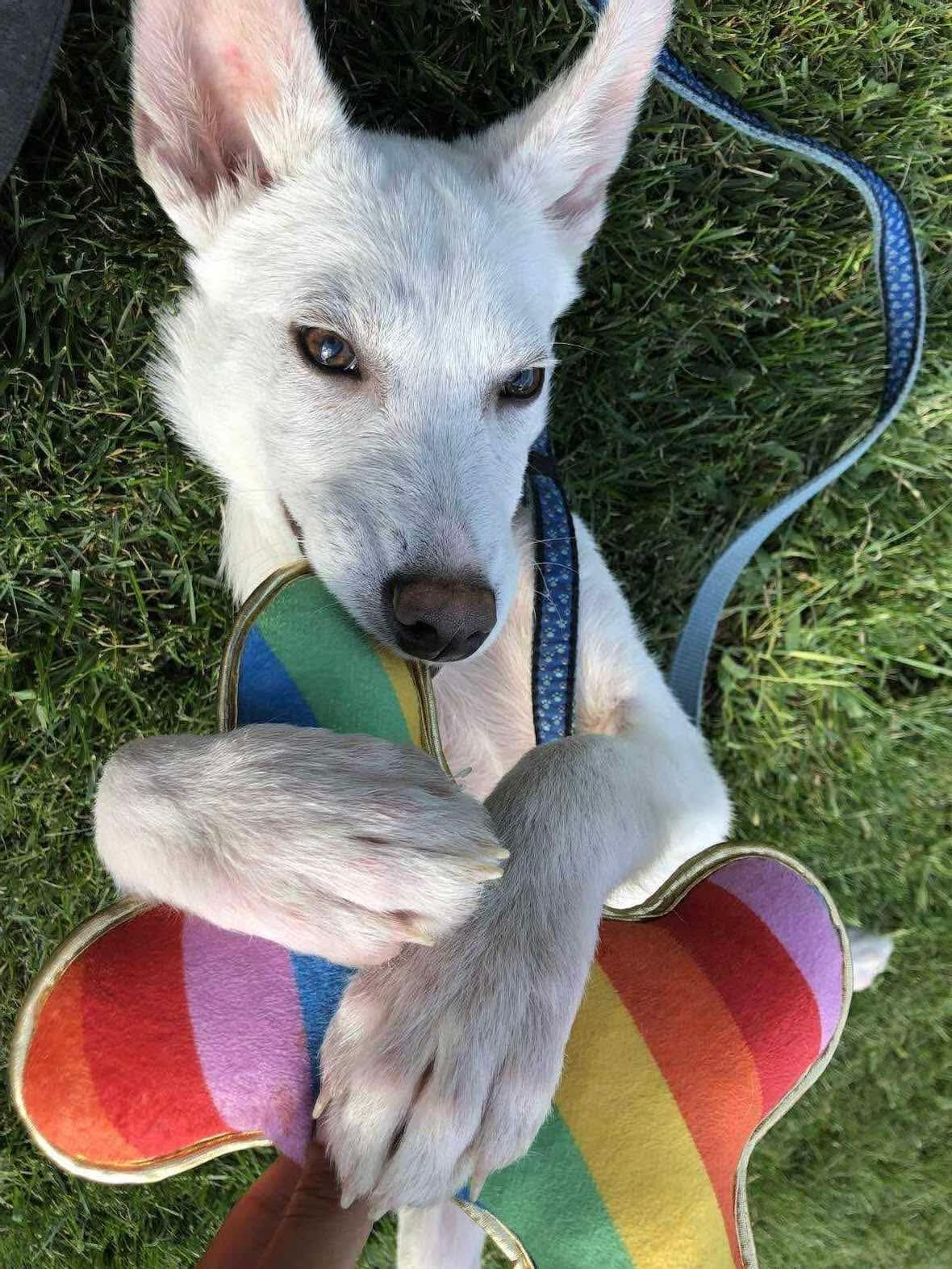 Like any pup my age, I’ve got a few things I’m working on: I sometimes jump on people (and their clothes/furniture), I get mouthy during rough play, and I think kitchen chairs and couches are my personal climbing structures. But I’m also eager to learn! I already know “sit,” and I’m interested in learning more tricks, especially if treats are involved.
