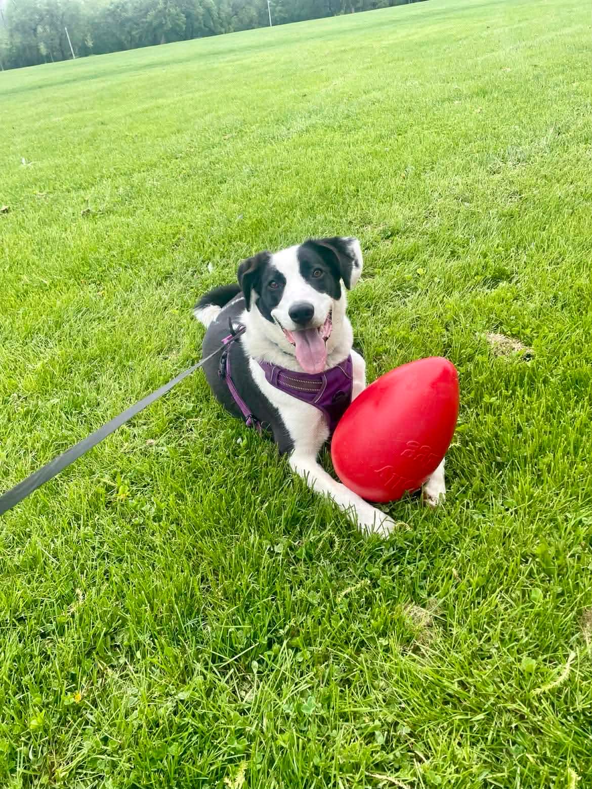 But more than anything, I love to play! I’ve tried agility and picked up the jumps super fast. I would love to try more dog sports, like flyball. I LOVE toys—especially my Jolly Egg—and good, sturdy chews.