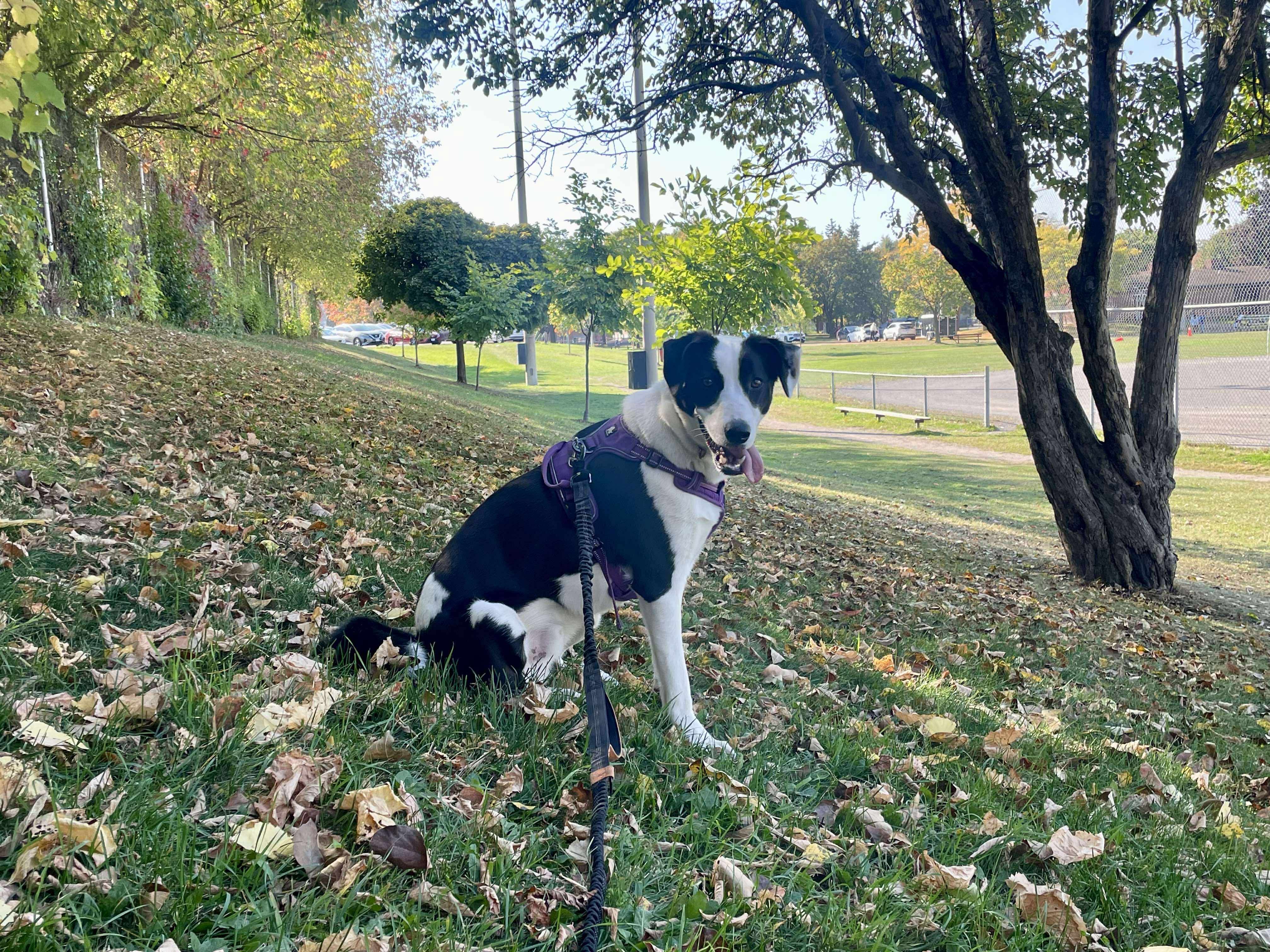 Hey there, I’m Pine! I’m a super smart, sensitive, and eager-to-please guy who bonds hard and fast with my people. I look to my humans for guidance, and I love learning. Training is actually one of my favourite things! I know lots of cool commands like place, paw, down, heel, and sit. I also know to “drop it” when told… which is extra important, because I’m a professional garbage collector on walks.