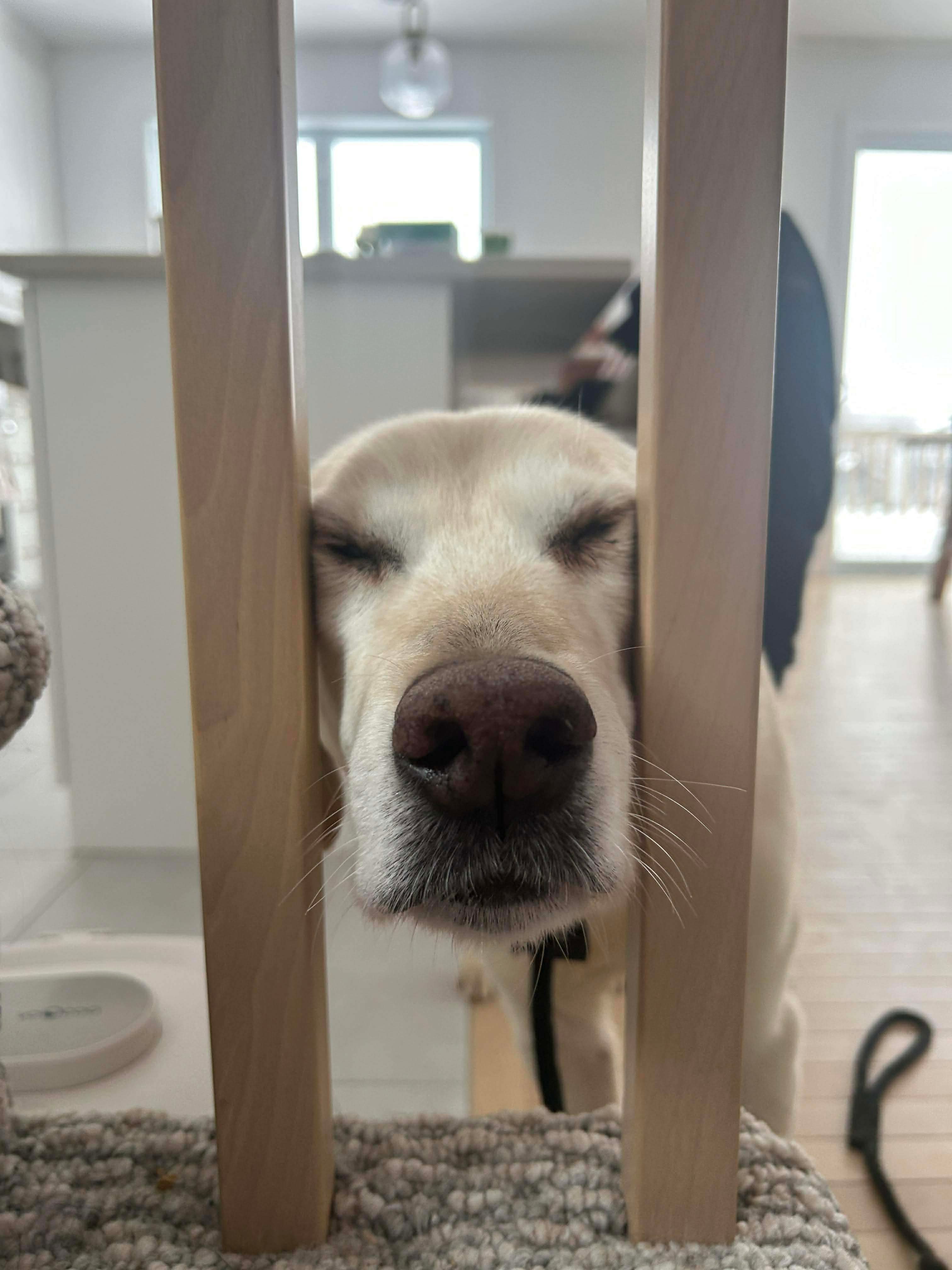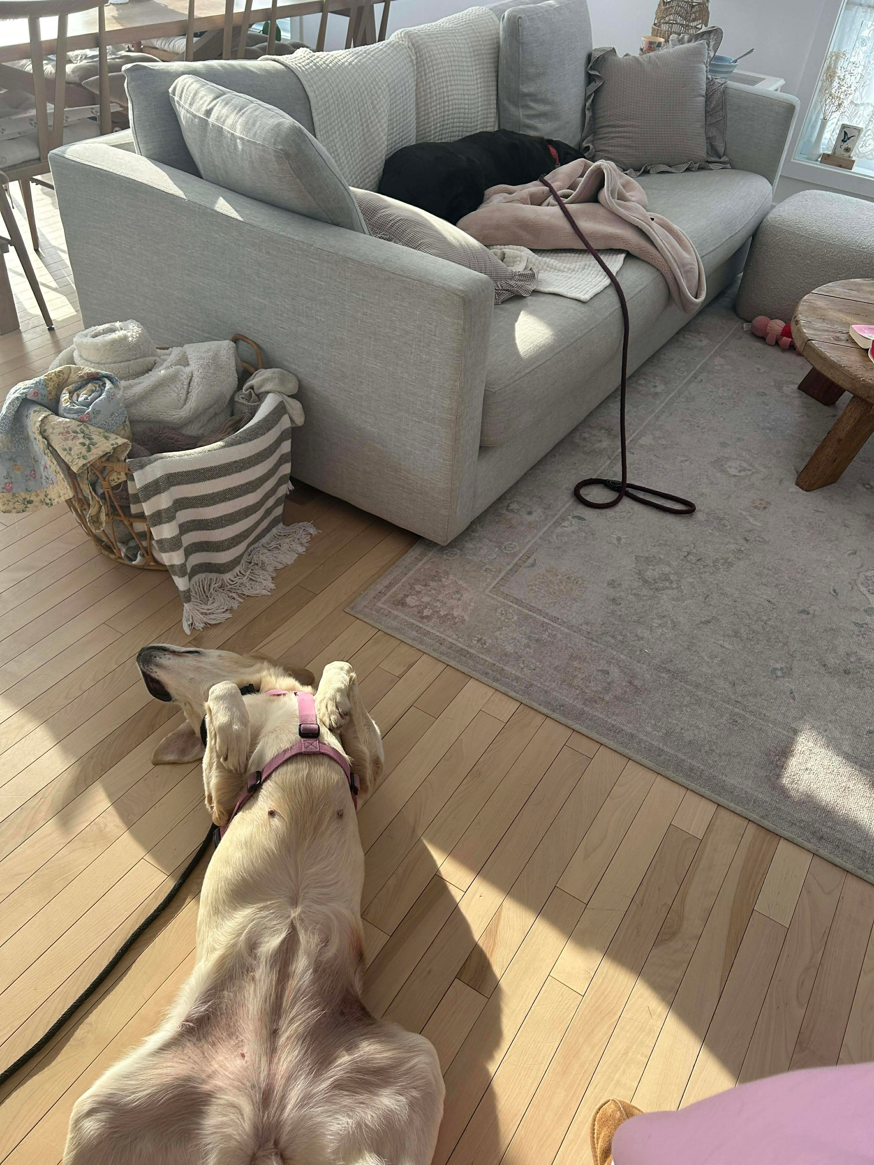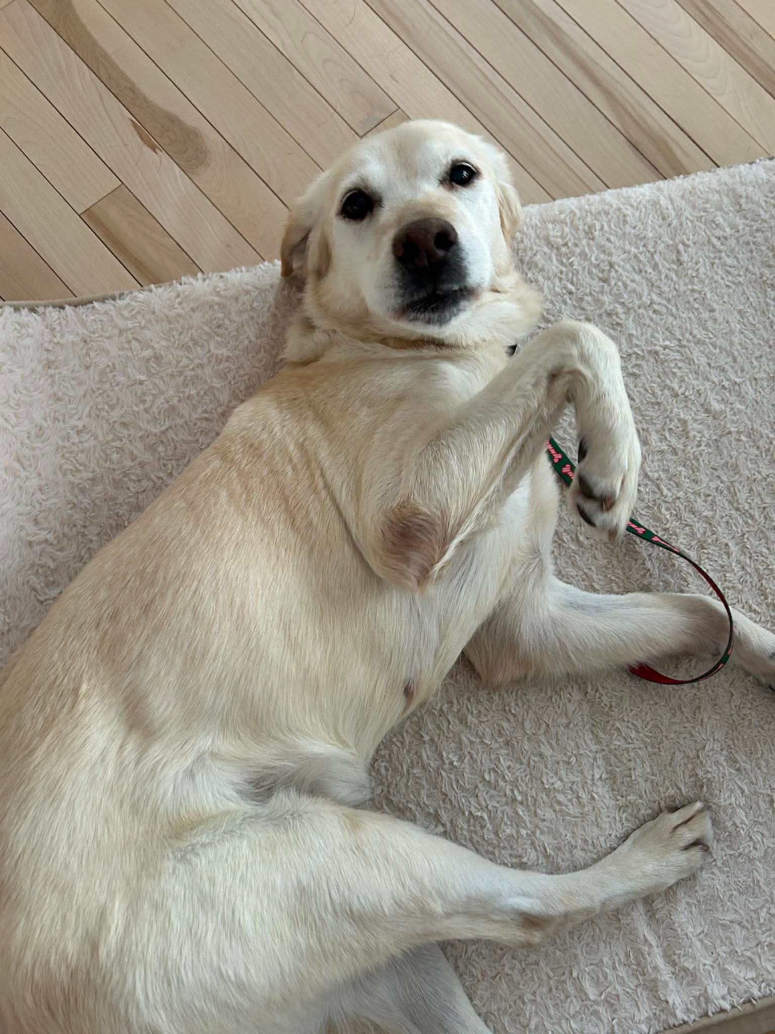 She enjoys relaxed, sniffy walks and occasional playtime, but her favorite activity is simply being close to her people. Rumba is a true velcro dog who loves hanging out in the same room as her humans. She spends a good portion of her day happily napping often paws up, wiggling around and asking for belly rubs.