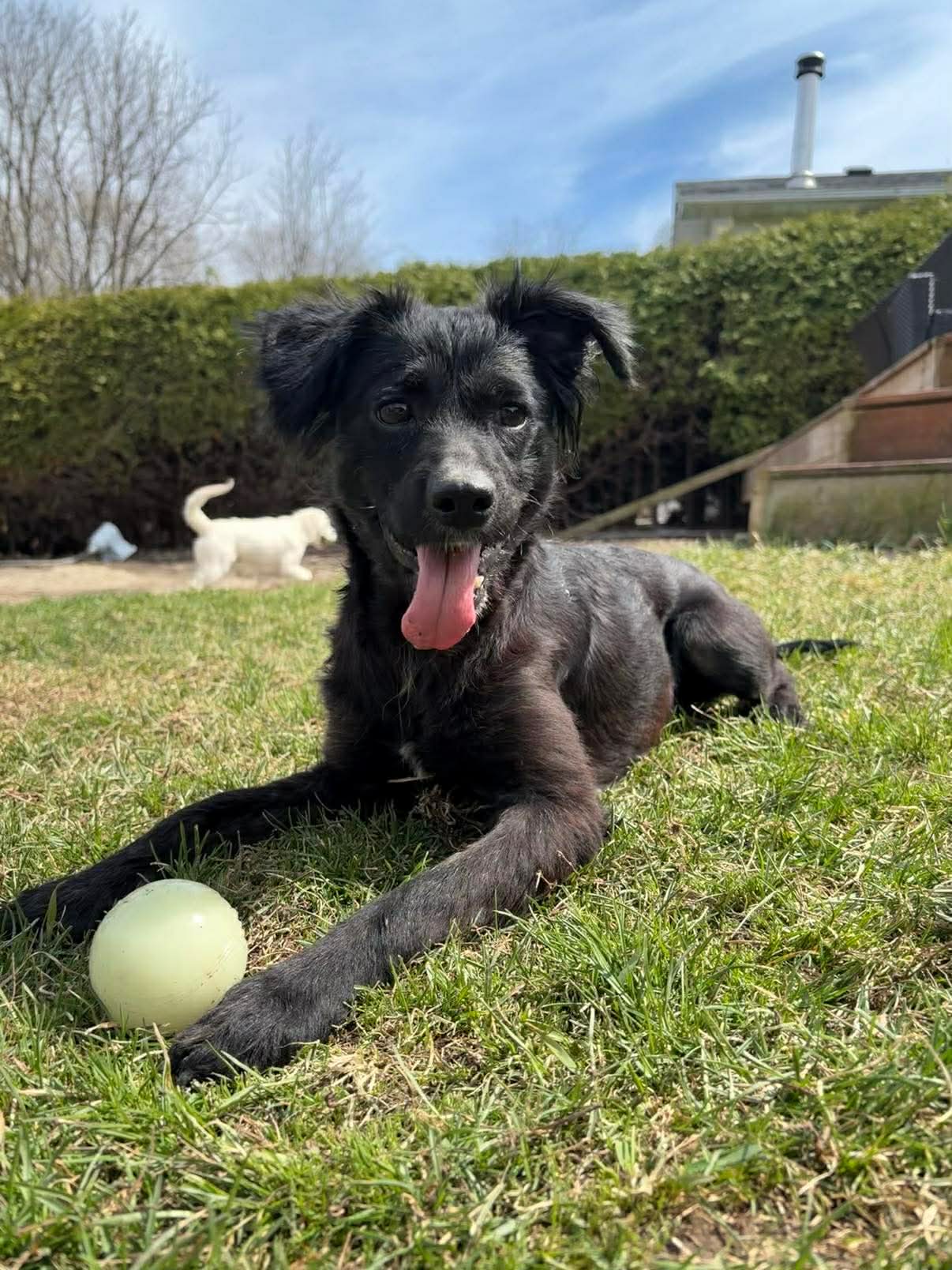 A backyard would be nice for her even a small one so she can go out and run and throw a ball. She’s very friendly once she warms up – but should be respected to take her time and not put in situations that would be overwhelming on a constant basis. She is getting better with that each day!